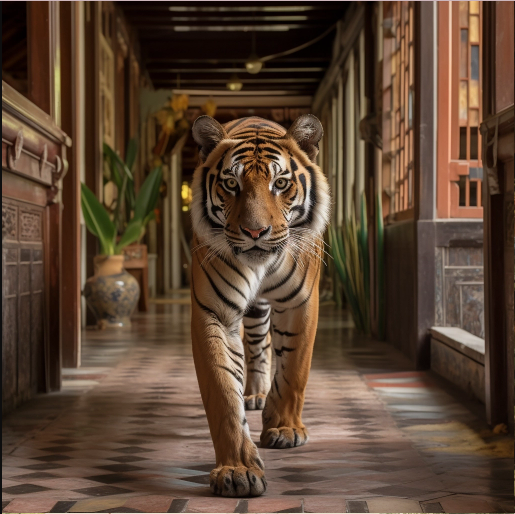 Harimau ini saiznya tinggi 2 kaki setengah, dan lebar nya lebih kurang 3-4 kaki. Jarak antara tuannya sekitar 10 meter. Usia harimau tidak tua, kalau di samakan usia manusia lebih kurang lewat 40an.