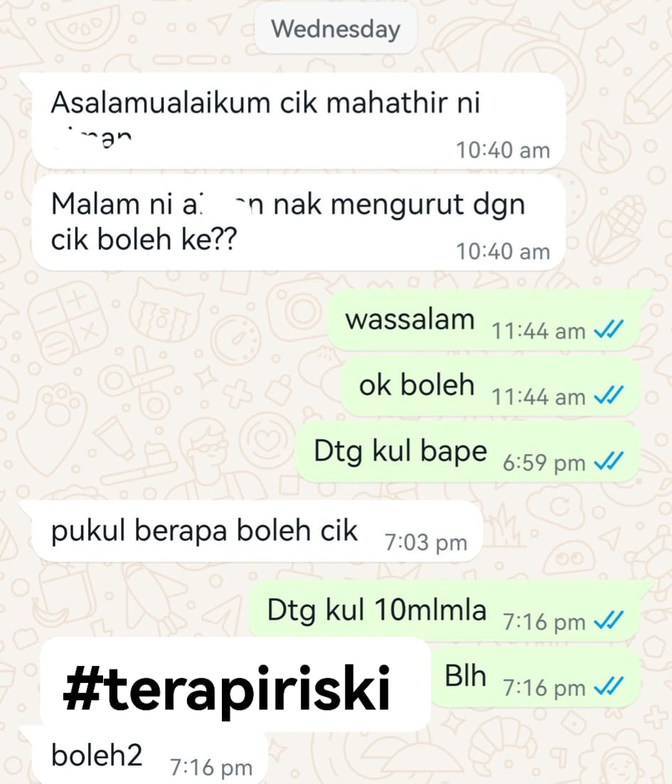 Mulanya nak urut namun selesai dengan Rawatan Islam. Pada awalnya pesakit saya ini nak urut saraf. Xde pulak saya tanya sebab ape nak urut. Bila masa sibuk, kadang2 xtanya sangat.
