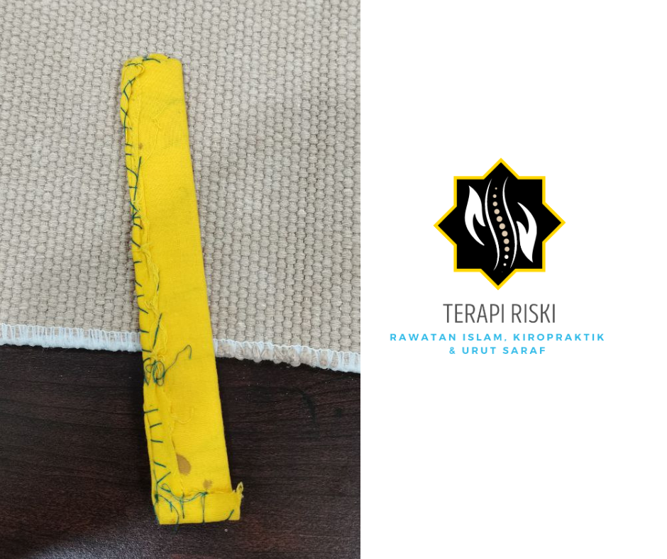 Lalu, pesakit saya kali ini dia bawa kain kuning yang dijahit dan didalamnya terdapat ayat-ayat quran yang digabung dan ditulis diatas kertas.